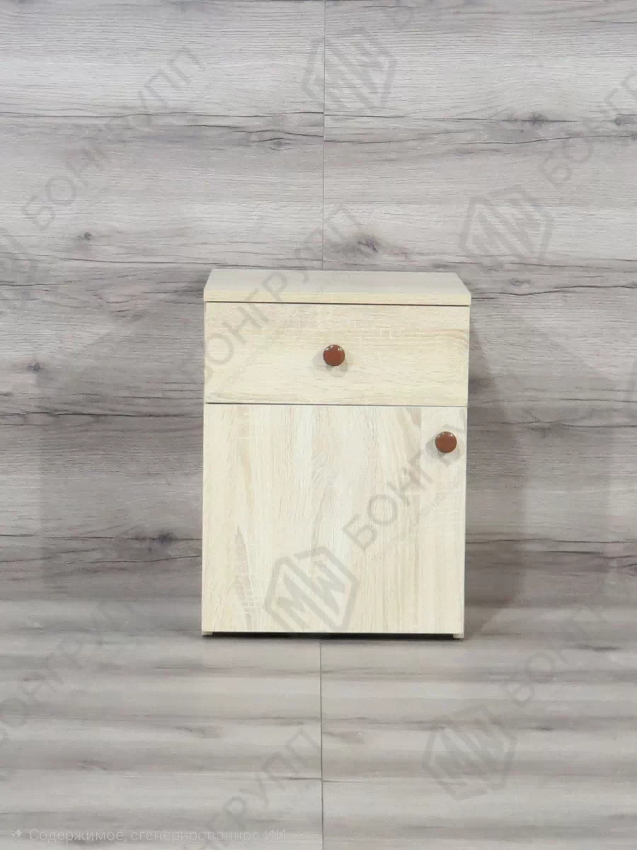 - Прочная конструкция: Тумба изготовлена из ЛДСП толщиной 16 мм. Торцы деталей обработаны кромкой ПВХ, что обеспечивает долгий срок службы и устойчивость к повреждениям.