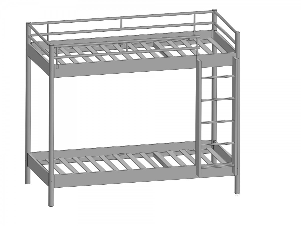 Каркас кровати выполнен из прочной стали, покрыт порошковой краской для защиты металла от коррозии. Покрытие устойчивое к появлению царапин и сколов, растрескиванию, не выгорает под лучами ультрафиолета, не боится влаги и перепадов температур. Дополнительные элементы, формирующие спальные места – ЛДСП. Изготовлены из сертифицированного материала, экологически безопасного.