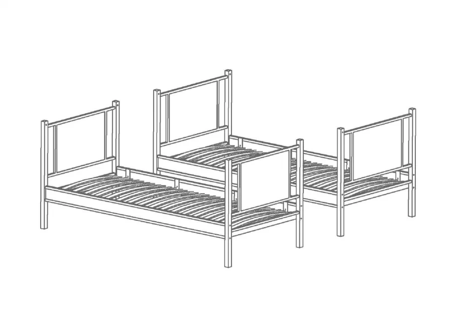 Кровать можно укомплектовать: матрасами, водонепроницаемыми наматрасниками, подушками, одеялами и постельным бельем.