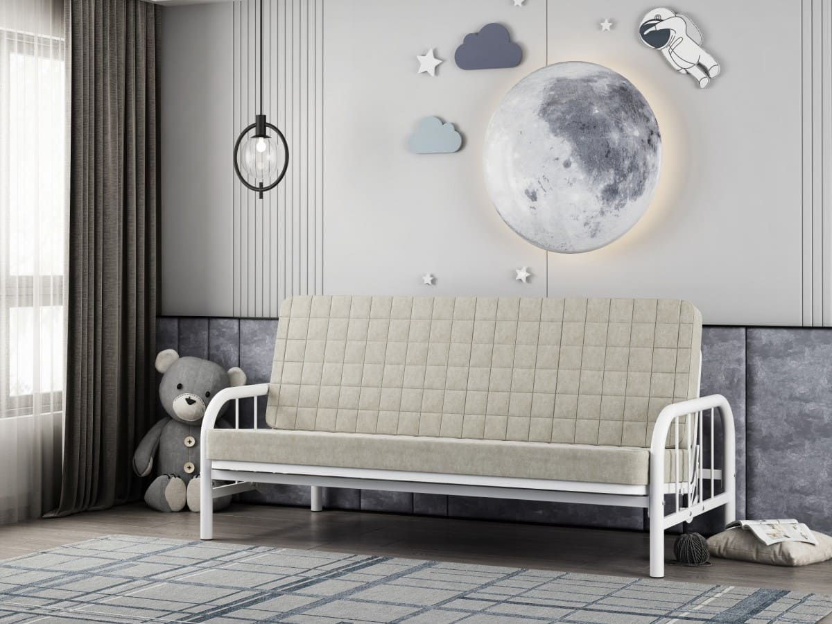 Диван-кровать Мадлен-4 с механизмом трансформации книжка и возможностью расположения в трех позициях. Металлическая конструкция прочная и надежная, выдерживает повышенные нагрузки, может использоваться для детей и взрослых.