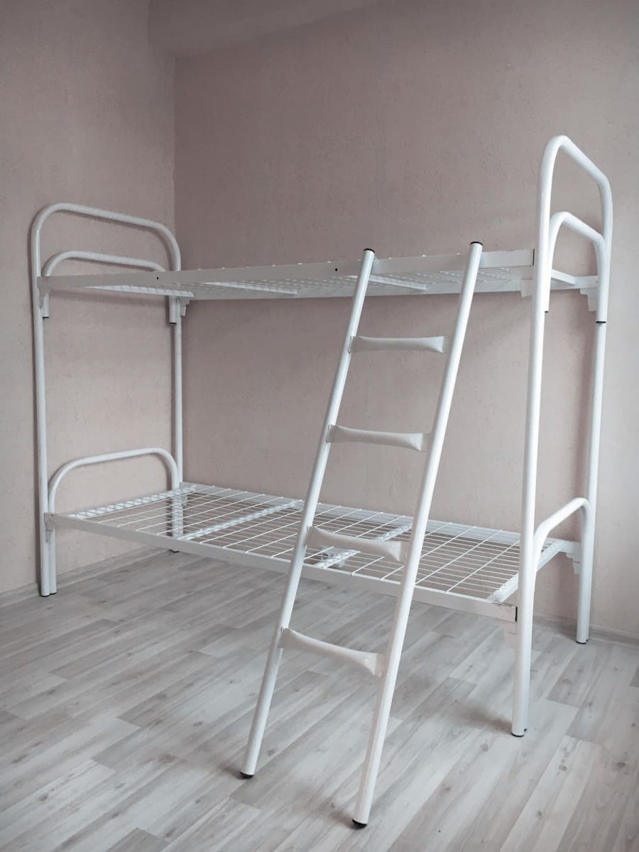 Металлическая кровать двухъярусная Дебют-2 (900), способна выдерживать нагрузку до 150 кг на каждый. ярус, что делает ее подходящей для людей с разным телосложением. В отличие от кроватей из ЛДСП выглядит менее громоздкой.
