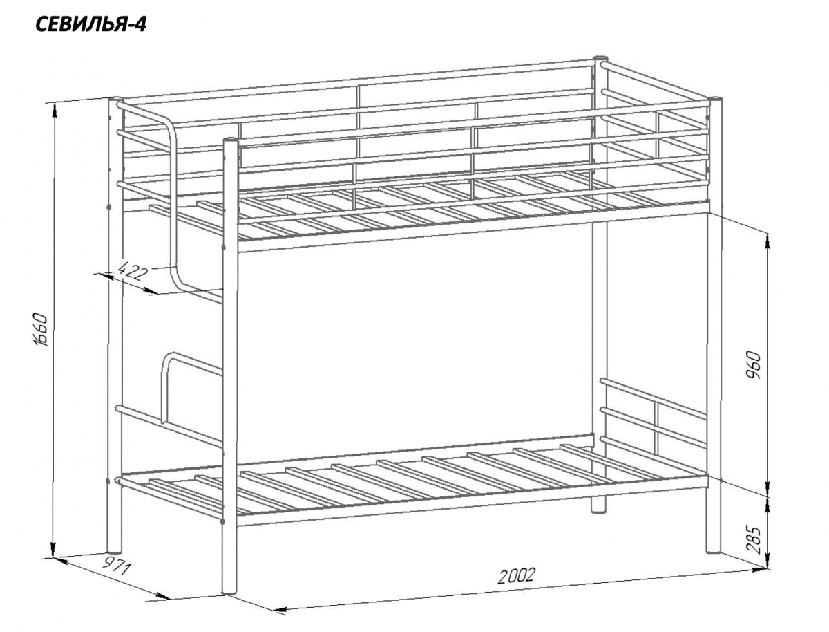 Металлическая кровать двухъярусная Севилья-4 белая способна выдерживать нагрузку до 180 кг (на одно спальное место), что делает ее подходящей как для детей так и для взрослых. В отличие от кроватей из ЛДСП выглядит менее громоздкой. В комплект входит прочная лестница, которую по Вашему желанию можно установить справа или слева.