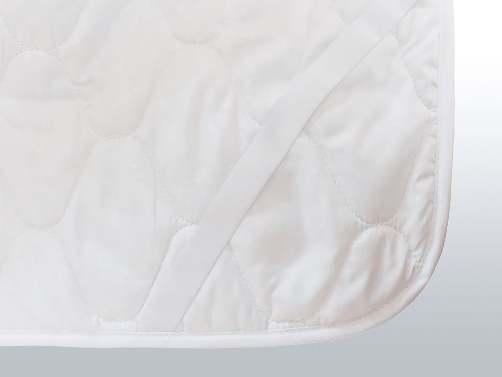 Для надежного удержания на матрасе предусмотрены резинки-фиксаторы, расположенные по углам. Благодаря стежке, наполнитель не сбивается, что продлевает срок службы изделия.