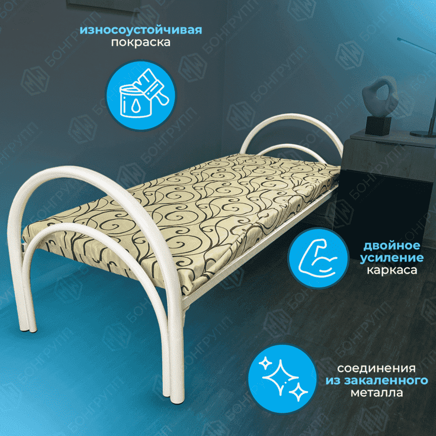 Надёжное и стильное решение для обустройства спальных мест в общежитиях, хостелах, гостиницах и других учреждениях. Модель сочетает в себе прочность, комфорт и современный дизайн.