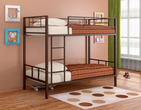 Металлическая кровать двухъярусная Севилья-2 коричневая способна выдерживать нагрузку до 180 кг (на одно спальное место), что делает ее подходящей как для детей так и для взрослых. В отличие от кроватей из ЛДСП выглядит менее громоздкой. В комплект входит прочная лестница, которую по Вашему желанию можно установить справа или слева.