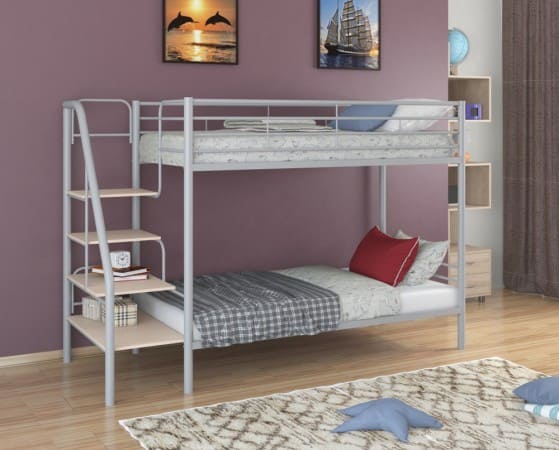 Все металлические элементы кровати покрыты износоустойчивой краской без запаха. Двухъярусную кровать можно собирать и разбирать неограниченное количество раз, и от этого она не потеряет в прочности и качестве.