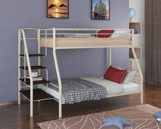 Металлическая кровать двухъярусная Толедо-1 слоновая кость способна выдерживать нагрузку до 150 кг (на одно спальное место), что делает ее подходящей как для детей так и для взрослых. Конструкция кровати предусматривает спальные места 90/190 см. и 120/190см. В отличие от кроватей из ЛДСП выглядит менее громоздкой. В комплект входит прочная лестница, которую по Вашему желанию можно установить справа или слева.