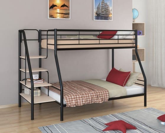 Металлическая кровать двухъярусная Толедо-1 черная способна выдерживать нагрузку до 150 кг (на одно спальное место), что делает ее подходящей как для детей так и для взрослых. Конструкция кровати предусматривает спальные места 90/190 см. и 120/190см. В отличие от кроватей из ЛДСП выглядит менее громоздкой. В комплект входит прочная лестница, которую по Вашему желанию можно установить справа или слева.