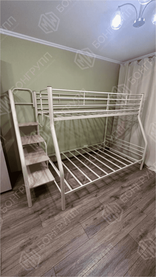 Все металлические элементы кровати покрыты износоустойчивой краской без запаха. Двухъярусную кровать можно собирать и разбирать неограниченное количество раз, и от этого она не потеряет в прочности и качестве.