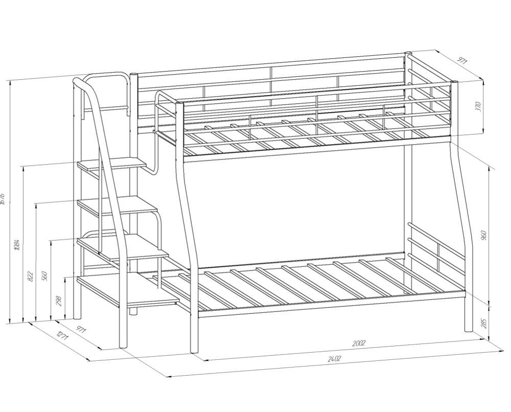Металлическая кровать двухъярусная Толедо-1 серая способна выдерживать нагрузку до 150 кг (на одно спальное место), что делает ее подходящей как для детей так и для взрослых. Конструкция кровати предусматривает спальные места 90/190 см. и 120/190см. В отличие от кроватей из ЛДСП выглядит менее громоздкой. В комплект входит прочная лестница, которую по Вашему желанию можно установить справа или слева.