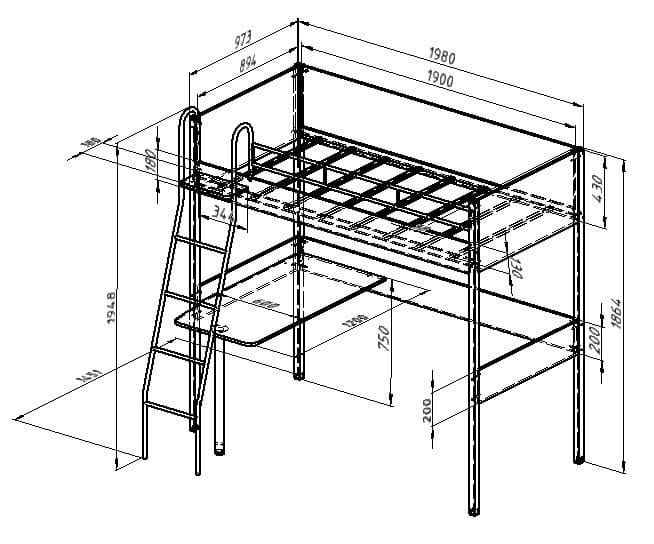 На нижнем ярусе кровати есть столик с рабочей поверхностью из ЛДСП белого цвета. Верхний ярус производится также с добавлением спинок из ЛДСП белого цвета. Высота верхнего яруса подобрана оптимально под рост ребёнка до 16 лет.