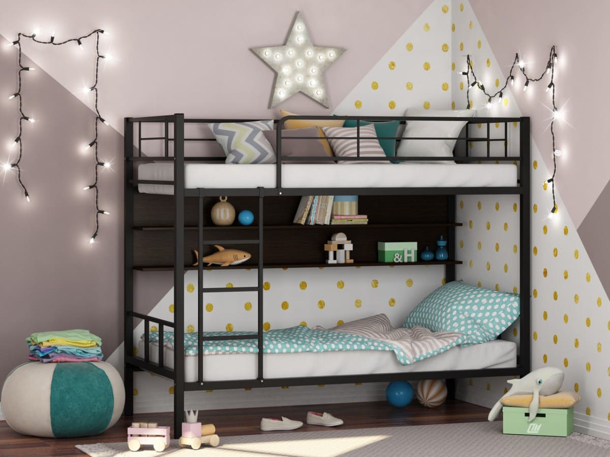 Приобретая кровать, Вы можете также заказать в комплекте полку, таким образом используя свободное пространство над первым ярусом. Эти крепкие полочки отлично подойдут для хранения книг и сувениров.