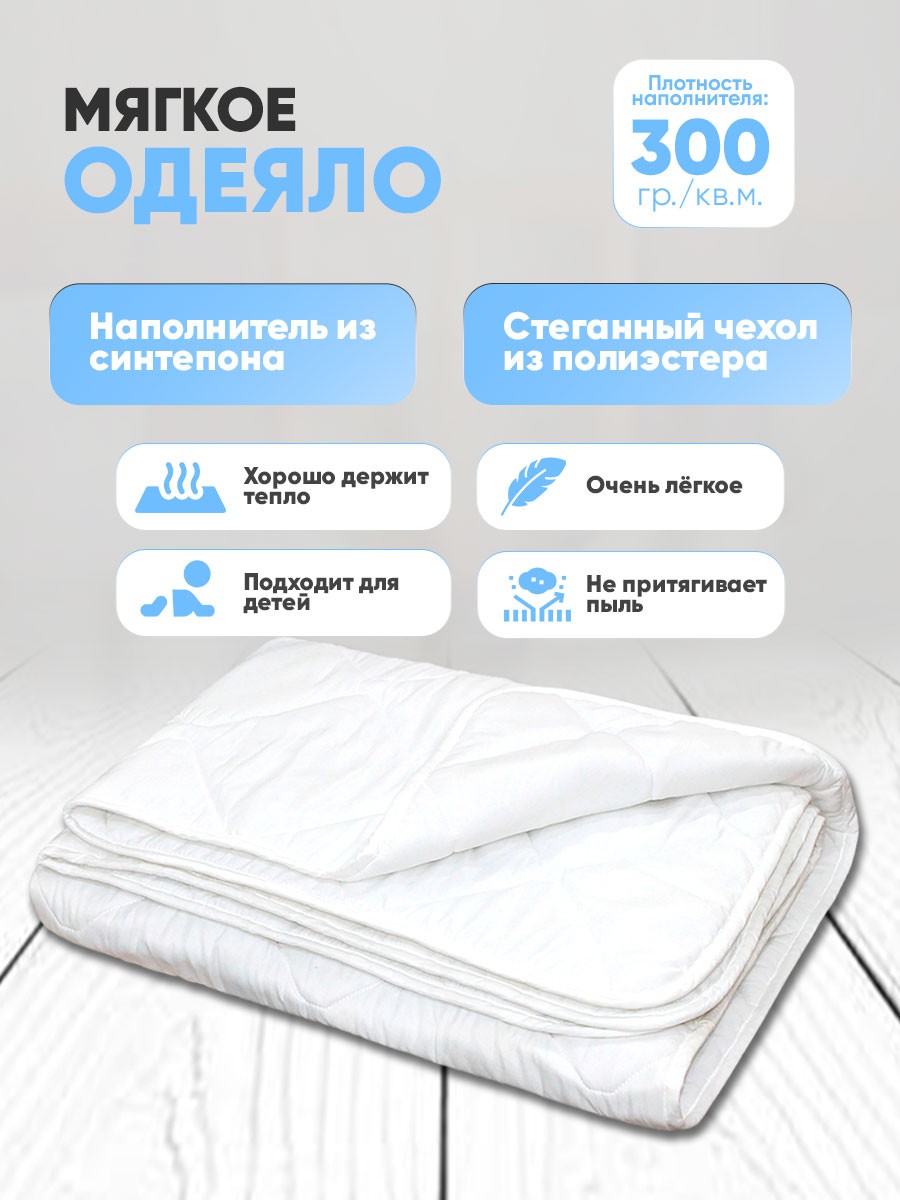 - Одеяло синтепон размер 1,5 сп ( 140*205 см ) плотностью 300 гр/кв.м, чехол стежка на многоигольной машине, ткань верха полиэстер, плотностью 65 гр/кв.м. Одеяло из синтепона отличается практичностью и удобством при использовании. Полиэстер легок, упруг, устойчив к теплу, загрязнениям и практически не сминается. Он хорошо удерживает тепло и подходит даже для детей. Одеяла из синтепона гипоаллергенны и безопасны, они не притягивают пыль и поэтому не интересны для пылевых клещей и других насекомых.