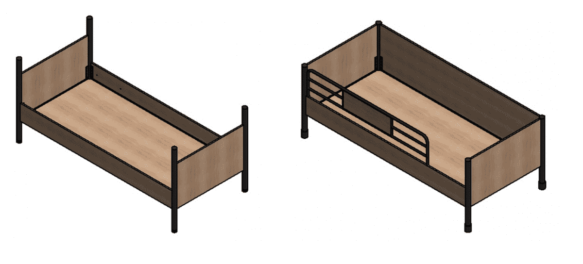 Кровать можно укомплектовать: матрасами, водонепроницаемыми наматрасниками, подушками, одеялами и постельным бельем.